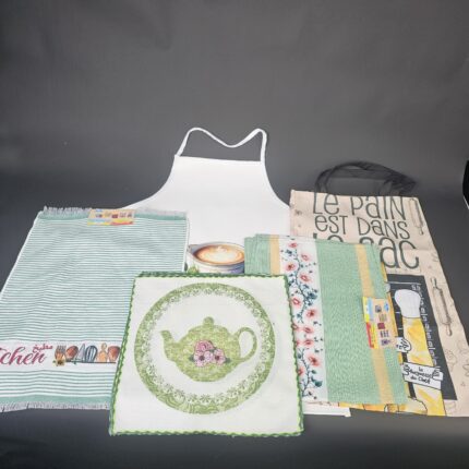 طقم للمطبخ من 16 قطعة نوعية رائعة  يحتوي على مازر- 6طراشن للأكل -6 طراشن قهوة – 2 طراشن كبار للطبخ